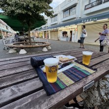 商店街主催のビアガーデン! 盛り上がってねえなあ笑! でも夏の夕方涼しくなって外で飲むビール最高!(º﹃º )