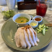立川のグリーンスプリングスのアジアンビストロでランチ。 海南チキンプレート。 ランチは、食前と食後のドリンクとサラダが付きました。食前はローズヒップ、、食後はコーヒーをたのみました。 パクチーは大嫌いです。除いてくれました。 チキンのソースが3種類。 ひとつはパクチーが練り込まれてるとのことだったけど、このソースが一番美味しかった(笑)