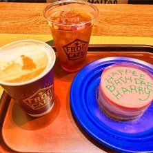ハグリッドが作ったハリーへの Happy Birthday Cake💓🎉 と ハリーのラテアート☕✧ 可愛すぎて崩すのもったいなかった〜 甘い物苦手だけど美味しすぎて余裕で完食🎵 甘すぎず8時間ハリーポッターの世界を満喫して歩き疲れた身体に染みる美味しさでした(*^^*)