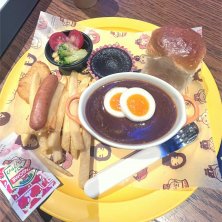 お子様ハンバーグ。 下に敷いてあるペーパーが可愛い🧙