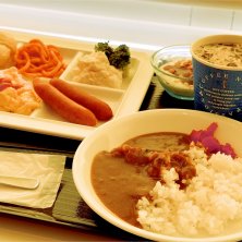 ホテルのバイキング朝食2日目は朝カレーにしてみました🍛ごはんよそってくれる自動マシンもカレー仕様。カレーも朝食にぴったりな甘口でおいしかったです。実家の父から電話きて、弟夫婦に2人目の女の子産まれたって👶