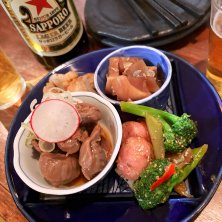✄------- 先週の土曜日の2軒目 -------✄ ✓おばんざい5種盛り ✓おつまみとろたく ✓レバー ドリンクは泡盛「龍ゴールド」 さて今夜は久しぶりの友人のお誘い。 のんびり家の事を済ませて夜に備えよー🍻✨️