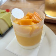 Dessert Pêche 桃のデセール ・桃の白ワインコンポート ・ローズマリーと桃のコンフィチュール ・クレメダンジュ ・ミントビスキュイ ・桃のチュイル ・桃のソルベ ・グラスバニラ ・パイのキャラメリゼ ・カシスムース ・フレッシュミントジュレ めちゃくちゃ美味しかった🍑