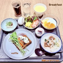 ホテルの朝食😃 ワッフル オープンサンドサーモン😋 &海鮮山わさびごはん😋
