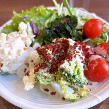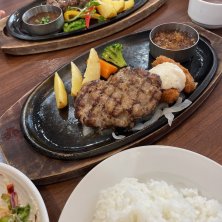 ハンバーグ&カキフライセット+サラダバー1518円。けっこうリーズナブルなお店です。きっと美味い!