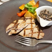 大山鶏のグリル トマトソースかけ 行こうと思った店がお休みだったので(定休日か盆休みかは不明)、日吉駅ビル上のレストランでランチ。 ハンバーグが看板らしい?けど、チキンステーキにしました。 皮はパリ、中はしっとりで美味しかったです。次はハンバーグ食べようかな。