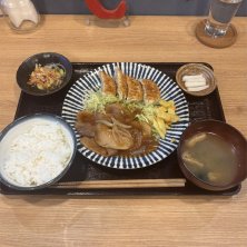 生田駅前の『台所 ふね』で晩御飯にしました。 豊富な定食メニューから餃子と豚ロース生姜焼きのコンビ定食を頂きました。 コンビ定食(味付餃子+豚ロース生姜焼き) 1,000円