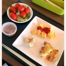 朝ごはん かぼちゃサラダ 卵サラダ オムレツ レタス、水菜、ミニトマト パングラタン 食欲のない朝…とりあえず少しでもお腹に入れて出発します。 昨夜から頭も痛いし、胃も何だかモヤモヤして変だし。 私が食欲ないなんて滅多に無いんだけど…とりあえず元気出して頑張ろう!