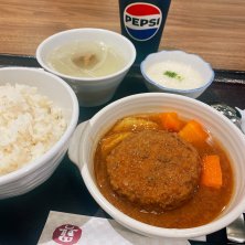 牛タンハンバーグ🧅オニオンソース** 投稿優先🙏 仕事関係のサービスセットでご飯🍚とドリンク🥤付き。 以前も食べたような。。と過去投稿確認したら、同じくオニオンソース🧅選択してた😅(デミグラスソースもある。)そして、その時はサラダ🥗付きでドリンクスは無かったみたい。少し経費削減かな。。でも、サービスして貰えるだけありがたい。 とろろとテールスープは追加した。 そして、食べながら長芋が家にあることを思い出した😅💦