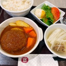 牛タンハンバーグ🧅オニオンソース📝記録 2024.11.11 月曜日のランチ。特典?でお安く食べられるセットだったのでこちら。麦飯とサラダ付き。テールスープは追加で購入。 ハンバーグ苦手なのだけど、コレはなかなか美味しかった😋でもフードコートだし、喜助だしきっとレトルトお土産ハンバーグだろうなぁ。。と思い、投稿前に検索🔍 こちらです♪🤣笑→ https://www.ec-shop.kisuke.co.jp/products/detail/409 でと、お土産としてはおススメ♬