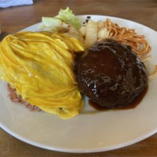 大人のランチ! オムライス、ハンバーグ、パスタ、フレンチフライ でも、味は普通…⭐️