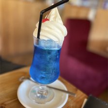 ザ!喫茶店 クリームソーダ この色(笑)きつめの炭酸、忙しいソフトクリームの量、よきかなよきかな