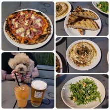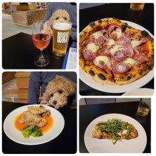 お義母さんの家に預けていたわんこを迎えに行きました。3週間ぶりの再会😍 夕飯は、Brewery でピザ等。