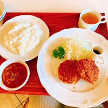 今日は午前中から友達親子に会って、午前中は子供達を公園で思い切り外遊びさせてからランチ🍽️🍗 良い感じの洋食屋さんにて私は「町のメンチカツ定食1100円)」に🤗🎶 ライス、スープが付いててご飯は大盛り無料だったから大盛りにして娘とシェア🍚 粗めに切った野菜の食感お肉のバランスが良い感じのメンチカツで、生パン粉を使ってるらしく衣はサクサク、中はジューシーって感じでとっても美味しかった🥰🥰 ハヤシライスのルーだけ250円頼んで娘にはそれを食べさせたんだけど眠かったのか超機嫌悪かった😓