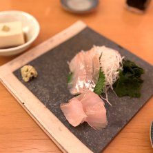 ひらまさのお刺身。 お蕎麦屋さんで呑むのが好きです。