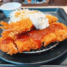 夜勤明け\(^^)/ 久しぶりの「松のや」でブランチ ロースかつ & 海老フライ 😋 新生活応援フェアで 190円引!