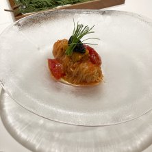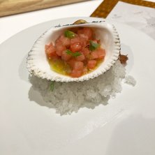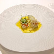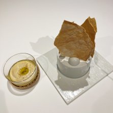 2023/10/07 恒例のお誕生日ランチ🍽はこちらで 「秋輿」 ・南瓜 豚塩漬け エディブルフラワー ・安納芋 シナモン グランド塩 ・烏賊 銀杏 いしる 「秋思」 北海道産乳呑仔牛 発酵人参 帆立貝 柴田農園 「秋暁」 豚タン 豚足 サンマルツァーノ 発酵赤玉葱 スパゲッティーニ 「千秋楽」 地鶏もも肉 フォアグラ カチャトラ 「律の風」 JINBOティラミス 小菓子 食事はシェフが出て来てソースをかけたりで完成。イタリアンドッグが独創的!二杯目の微炭酸赤ワイン、また飲みたい🍷
