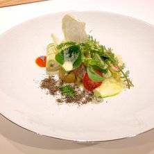 昨夜のごはん♡ 最近一推しの野菜イタリアン♡ ランチがとっても良かったので、ディナータイムに訪問してきました。 一品一品がとても美しく、見た目にも感動♡ スペシャリテのバーニャカウダ。 30種以上のお野菜が使われてるそうです。 出てきたのはこちら♡ (右上から2番目) (心の声)…あれ?ずいぶん凝縮!イメージ違った…笑 ですが、生のまま、茹でる、揚げる、ソテーする、炭で焼く、発酵させる、ペーストにする…などなど色んな調理法でまとめてるそう。 デザートまで全部完食!罪悪感あまり無し♡