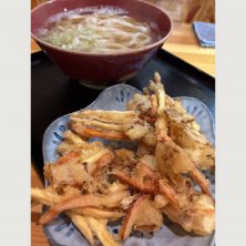 鶏天うどんです。うどんは冷たいタイプ、鶏天は別添えなのであつあつで食べられます。通常で麺300gあるのでかなり食べ応えあります。