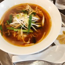 ランチの海老ワンタンそば! ん〜〜〜〜!んまい! ミニルーロー飯もつくので満腹すぎです… ご飯いりません〜って言おうとしたけど、やっぱ食べたくて言葉を飲み込んでしまった。 デザートまで付くの幸せすぎる〜✨✨