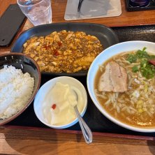 平日昼定食麻婆豆腐 ラーメン🍜ライス🍚杏仁豆腐付き^_^