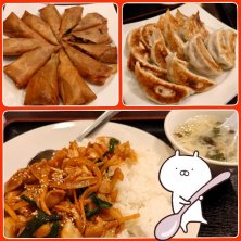 晩ごはん🌃 ☆豚キムチ丼🐷 ☆焼餃子🥟🥟🥟 ☆春巻き オイシスギテ、マンプクデス…(๑╯ô╰๑)=3