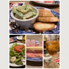 友人のお誕生日会で来ましたー😋 アペロールスプリッツアーで乾杯🥂 カプリサラダ🥗 チーズフォンデュ🫕 キノコパスタ🍝 生ハムアボカドとサーモンのタルタル🥑 クワトロフォルマッジ レモンスプリッツアー🍋2杯 タラコとポテトのアヒージョ 追加バケット🍞 デザートプレートはお誕生日おめでとうのメロディーに乗って〜🎵 最後に乾杯🥂シャンパン🍾が付きました〜 友達一人ダウンで心配しましたが無事に家に帰れました〜