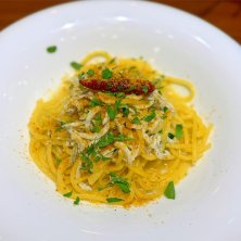コレはママの ✨しらすとカラスミのペペロンチーノ🌶️✨ 次男は来る途中待ちきれずパン2個🥐食べたしいっかと思ってたまには辛いやつ😊 美味しかったー‼️ しかし毎日パスタづいてるな笑 せっかくみんな水着着てるし移動して水遊びしに行こー‼️