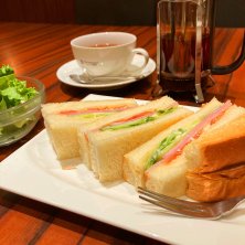 ロースハムと野菜のトーストサンド ミニサラダ 紅茶