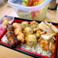 今日は買い弁🍱 日本一の塩焼鳥弁当に ナンコツ串とカシラハラミ串追加😁😁😁 豆はいらないんだけどなー 食べ物捨てるのイヤだから食べた✋