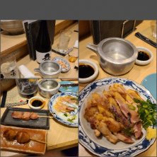 11/29 京都はしご② 淡海地鶏とおばんざんいの店。 モモのたたき、極上白肝の串焼き、アツ皮 他 レモンサワー2、地酒4合 今年夏頃にこちらのモモのたたきを食べて感動したので1ヶ月程前に予約して再訪。 これはヤバい😋