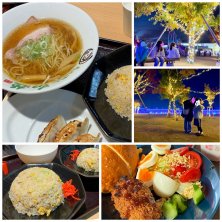 たくさん遊べるキッズパーク&道の駅のイルミネーション✨ 長女の学校のお友達と! 男の子なんだけど普段から仲良く遊んでくれてる子なのでみんなでお出かけできました。うれしい✨ イルミネーションに囲まれた遊具で暗くなるまで遊べて楽しかったよ 道の駅で夕飯食べて帰りました 醤油ラーメン 餃子 チャーハン 半チャーハン 半チャーハン チャーハン大好きすぎ 笑 メンチカツ買って次の日の朝ごはんにした ここのメンチが美味しいんだよ〜😋