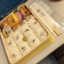 まぐろいくら弁当 ¥1600円 どこの名物かわかんないまま購入 とろけたマグロと小粒のイクラは既に味付けしてあったけど、お醤油を食べる前にたして食べたかった とは言え揚げ物ばかりのお弁当には飽きていたので、丁度よかったです。