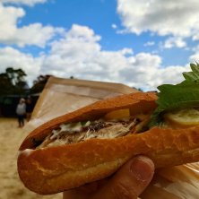 鯖と大葉のバインミー 「花と緑のフェア」で出てたキッチンカー 芦屋バインミー「アンコムチュア」 連休最終日は、公園のイベントへ 風はひんやりやったけど、陽がさすとすごく気持ちのいい天気 やっぱりこの時期が好き 他に、最近月2くらいで買ってるお花屋さんで花を買い、コーヒーショップ2軒、先月も食べた製麺所のきつねうどんをいただいた