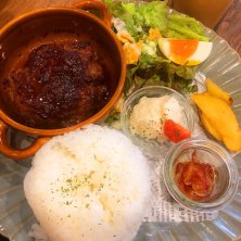 ランチ ◎飛騨牛ハンバーグランチ ◎お子様ランチ 午前は母も一緒に新しくできた市の子ども遊び場へ〜広くて綺麗で娘も満喫。 お昼は二階にキッズスペースがあると聞いてたカフェに。丁度親子連れが帰るとこだったので、予約なしで良い席座れました。 お店入った時はすでに眠たくてギャーギャーだったけど、このおもちゃたちを見てすぐに元気になり遊んでくれてほっ。 飛騨牛ハンバーグは肉肉しくて食べ応え満点〜ソースが選べたので味噌デミグラスソースに。 娘もパクパクお子様ランチ食べてました ごちそうさまでした❤️