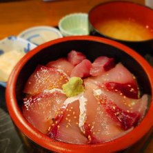 明けで曇天?晴れのち雨の予報だけど、男鹿方面へ。ちょっと早めのランチで「3色丼(男鹿産真鯛漬、ブリ漬、本マグロ)」1,500円!ご飯大盛無料だけど、ただより高いものはない。普通盛?ですが、3色とも美味しかったです。夜も来たかったけどね、今夜は他所泊予定なのでまた今度。😉