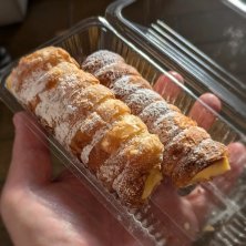 「パイ生地で丸めてクリーム入れたお菓子」 名前を忘れたけど美味しかった。 調べたけど、クロワッサンホーンが一番近いけど、そんな名前ではなかった。 知っている人がいたら教えて。