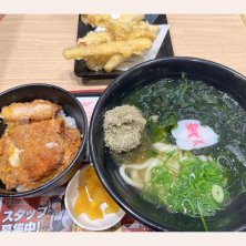わかめうどん🍥ごぼう天トッピング ミニかつとじ丼