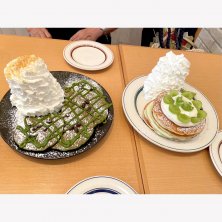 宇治抹茶、ホイップクリームとレッドビーンズ(あずき) シャインマスカットのパンケーキ