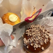 本日は生ドーナツを頬ばりに来ました‼️ クリームがこぼれそうで、ほっぺたもとろけ落ちそうになりましたよ😌