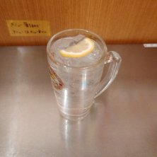 月曜日から盛況で、冷蔵庫のうえをテーブルにする席で酎ハイ