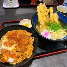 早いけどランチ 資さんうどんで ゴボウ天うどんと かつ丼です。 流石に腹パンになりました。 どっちかミニにすれば良かったかな? ごちそうさまでした😋