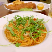 大きいエビが入ったトマトガーリックリングイネ☻ ロンドン旅🇬🇧