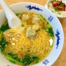 「焼味佬(シュウメイロオ)@市谷田町二丁目」で「D定食:鮮鰕雲呑麵&焼臘飯」950円。気温:12℃。快晴。天気は良いが肌寒い。そんな今日は、広東省出身の朋友と連れだって、彼が行き付けの「広東菜専門店」に初訪問。元「香港迷」の私としては、願っても無いナイスチョイス。私は迷うこと無く「鮮鰕雲呑麵&焼臘飯」。超久し振りに「輪ゴム」の様に細くて噛み切れない「麵」を食う。「スープ」も香港のそれに近い。「雲呑」にはエビの気配が無い。仕方がない。「焼臘飯」は小さな「叉焼」と「タレ」が懐かしい味。ごちそうさま。