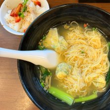 エビワンタン麺と焼豚飯。