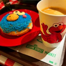 エルモの巨大なドーナツ。遠近法とかじゃなくてガチで大きい。 娘と夫のお出かけデザート。楽しんできたみたいで良かった!