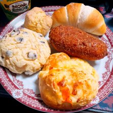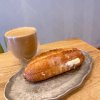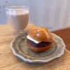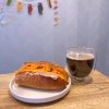 晩ご飯😃 戸越公園…ことぶきベーカリーのサンドイッチ😋 マルシンフーズの和風ハンバーグ しそ入り😋 燻製チーズ薫るチリトマトヌードル😋