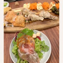 昨日は職場の忘年会✨でおしゃれイタリアン食べて来ましたぁ〜💕まずはサラダと前菜♡