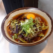 2日連続長野駅新幹線そば店です。たぬき+生卵470円🪺やっばりここのそばうまい。いつも混んでるもんな。女性も多いし。
