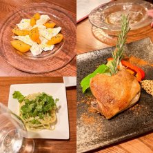 トリッパとナスのトマト煮、鱒のムニエル、海老のアヒージョ、ひよこ豆。 駅からちょっと離れているけどどれもおいしくてまた来たい。